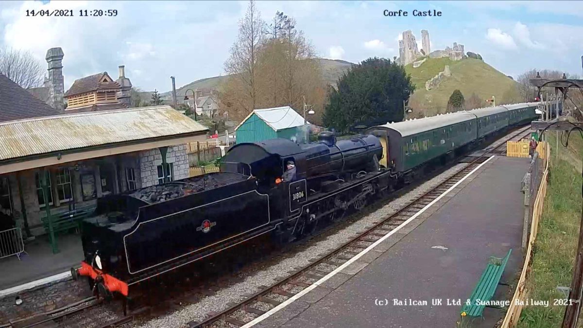 There are now two webcams providing a live view of the station and platform, one looking north with Corfe Castle in the background, the second looking south showing the footbridge and old goods yard.